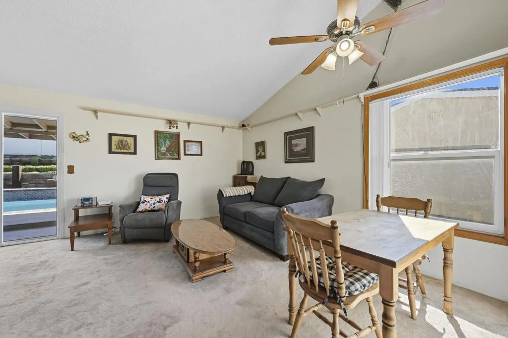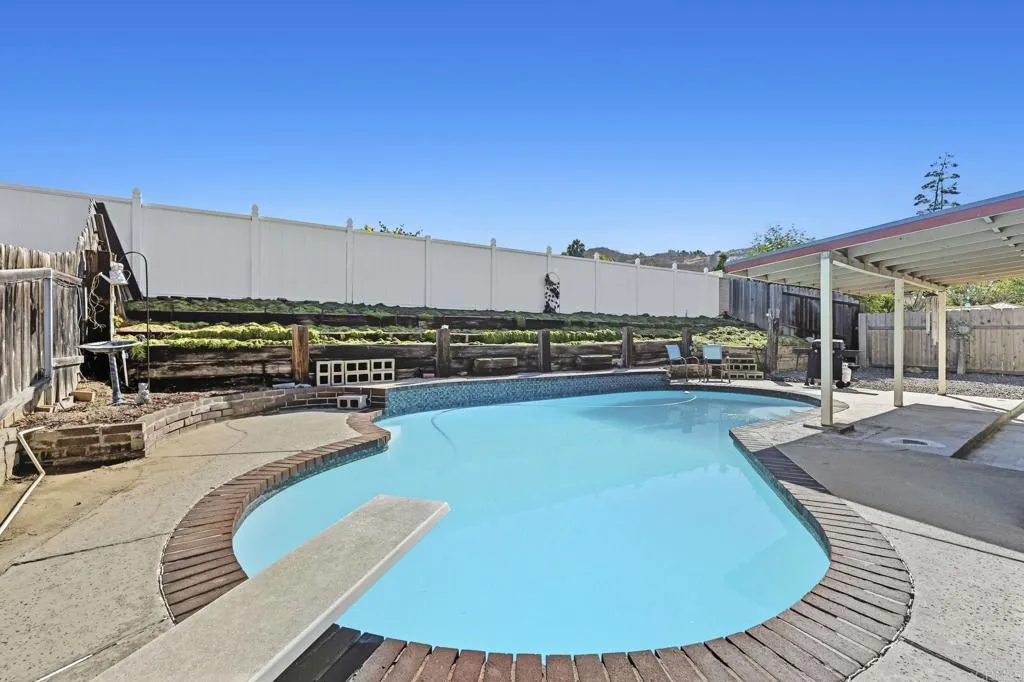 220 James Street is a quaint single-story home nestled in a charming neighborhood near schools, shopping, and a major thoroughfare that leads directly to I-15. The vaulted ceilings in the living room and kitchen invite in the daytime sunshine that illuminate the space. This three bedroom, two bathroom home includes an updated secondary bathroom shower, a primary suite with double door entrance, owned solar, double paned windows, a newer roof, and new HVAC duct work. Enjoy the water conscious landscaping outside under the covered back porch, or take a dip in the sparkling pool. This home has been lovingly tended to and is waiting for new owners to come in to add their personal touches.