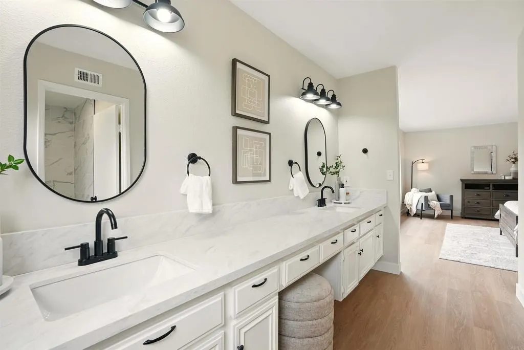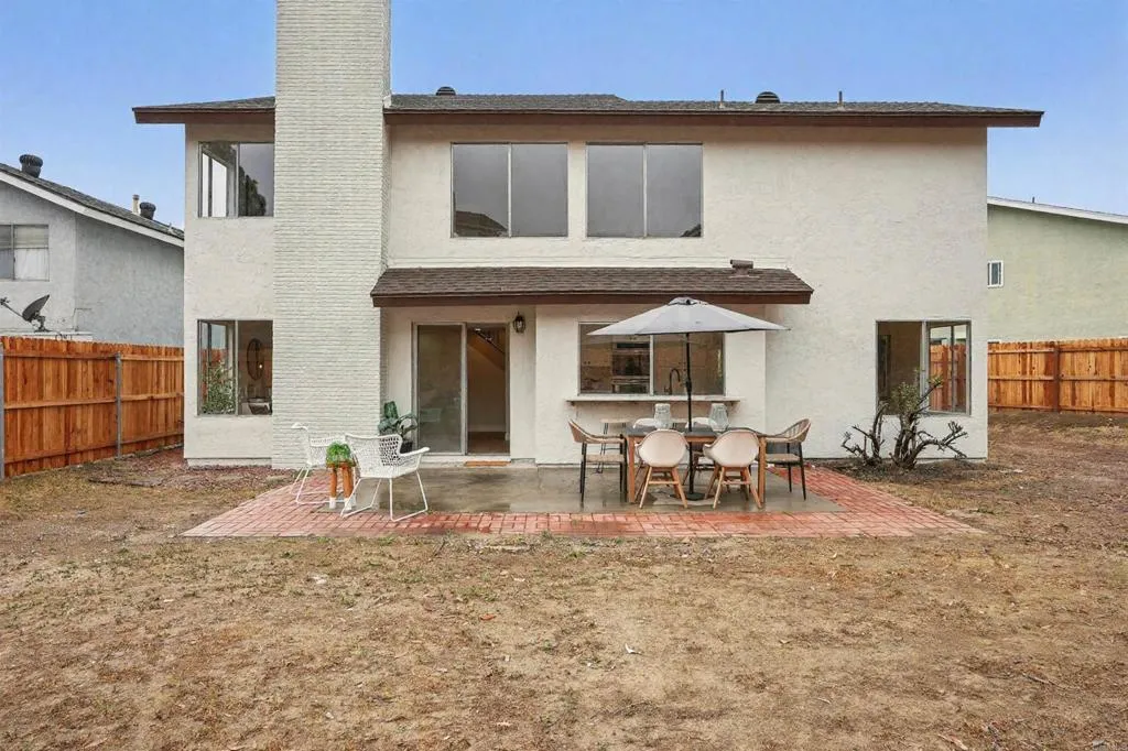 This bright, elegantly updated Rancho Del Rey home offers the space and style for the way you live today. With 5 bedrooms and 3 baths, including a convenient main-level bedroom and full bath, theres room for everyone! The modern kitchen and den with wet bar make entertaining effortless, while large windows fill the home with natural light. When Californias perfect weather calls, open the doors and let gatherings spill into the sprawling backyard- a true blank canvas with room for a pool, ADU, deck, or your own backyard getaway. The private, oversized primary suite upstairs overlooks the huge yard and has an ensuite bath. Tons of room in the spacious secondary bedrooms, an optional office area, and an immaculately updated hall bath. Tucked on a quiet cul-de-sac just minutes from parks, shopping, and the freeway, this home offers both privacy and convenienceperfect for busy days and relaxed evenings. Tax records list this property as a 4-bedroom home.