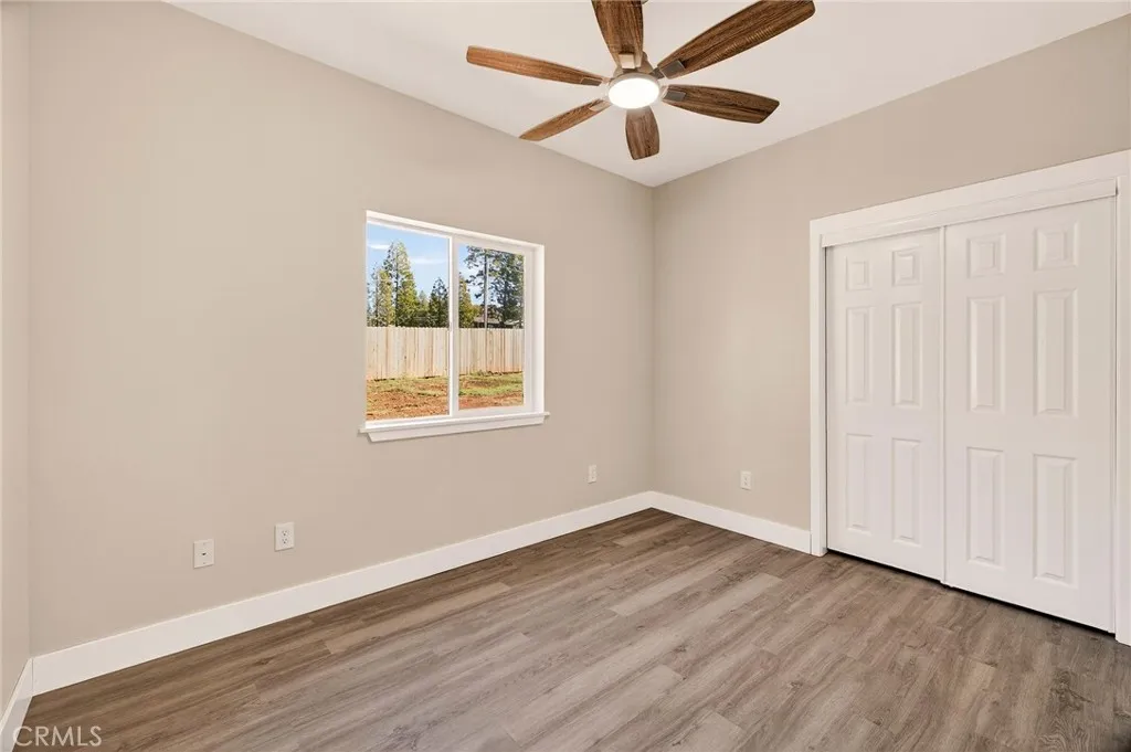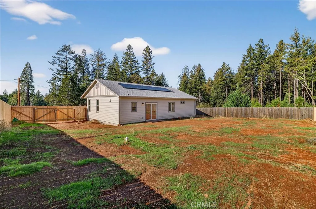 Brand New BEAUTY on the market! Drive up the extended driveway and marvel at the gently landscaped yard with irrigation installed, and the covered front porch. As you walk into the home, notice the foyer and open space! This home offers a nice and clean look with amazing upgrades such as being pre-wired for a security system, recessed lighting, fire sprinklers, and an electric fireplace for those cool nights! To your left is a large laundry room, equipped with a sink, and even a storage room! That's not all! There is a storage closet in the living area, and a pantry in the kitchen! Make your way to the kitchen and gaze at the large farm style sink, Quartz counters and island, soft close drawers and cabinets, and brand-new appliances! Down the hall you will find three nicely sized bedrooms equipped with ceiling fans, and the guest bathroom complete with Quartz counters and a shower/tub insert! The primary bedroom has a large walk-in closet and your very own bathroom with a walk-in shower! That's not all! This home also has 8 fully owned solar panels to give you a breather on that electricity bill! The backyard is large and fully fenced and even has a large gate to store your RV, trailers, or any other toys! Builder even installed a brand-new septic! Need even more perks? Say less! This home is part of Paradise Pines Property Owners Association which gives you access to a seasonal Olympic sized pool, large hot tub, hiking trails, playground, tennis courts, and more! Come view this beauty today and be prepared to fall in love!