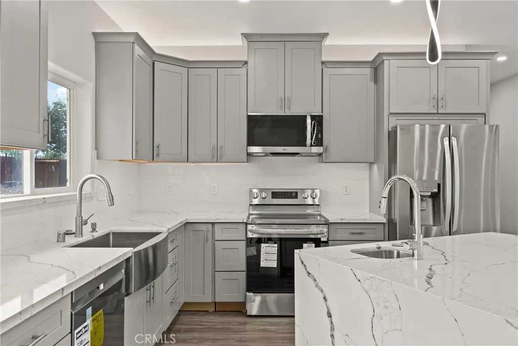 Brand new construction featuring 4 bedrooms and OWNED SOLAR and a view of Sawmill Peak! Located conveniently in lower Magalia with quick access to local amenities and Skyway Rd, this is one you won't want to miss. The open floor plan showcases the beautiful kitchen which offers a waterfall island with quartz countertops, LG stainless steel appliances, an additional prep sink, tiled backsplash, modern pendant lights and a farmhouse sink. Off the kitchen and dining area is a slider leading to the back patio. There are 2 guestrooms at one end of the home, along with the guest bathroom and hall storage. At the other end of the home is an additional bedroom/office/den and primary bedroom. The primary bedroom let's in tons of natural light with the sliding glass door that leads to the backyard, as well as an attached bathroom with a tiled shower. Additional features include a 2 car garage, fully fenced yard, landscaping, RV parking, stamped concrete, and dimmer switches on all the recessed lighting.