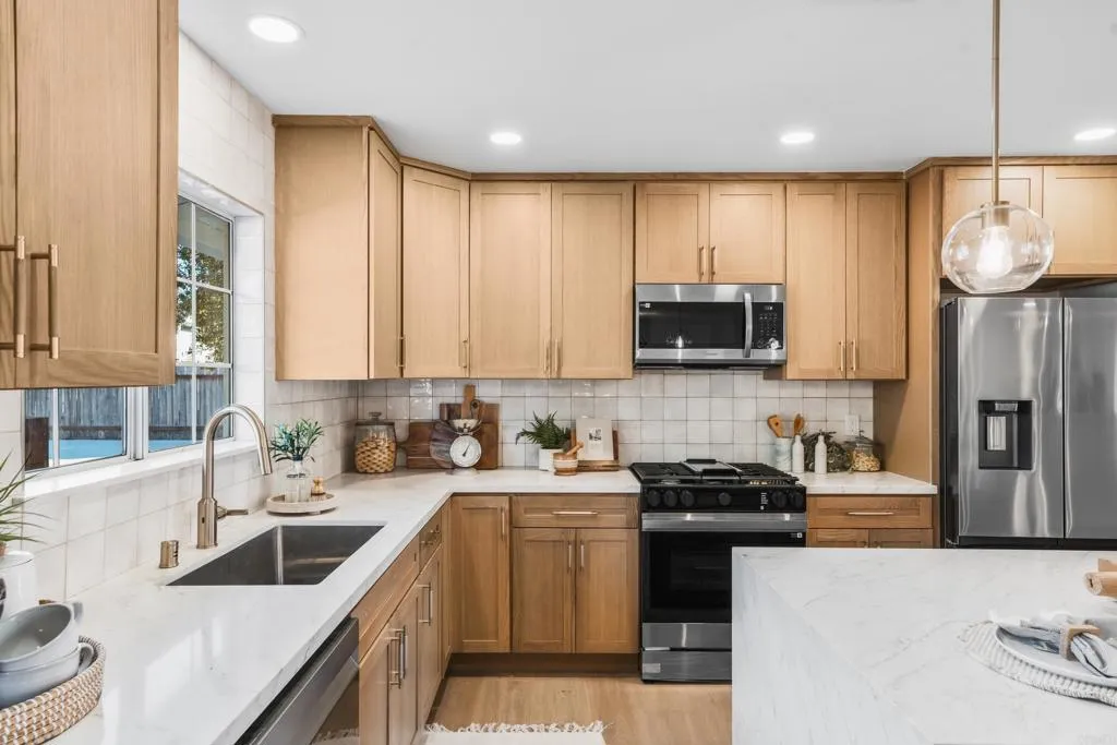 Welcome to a completely & tastefully REMODELED single-level home perched on a spacious .53-acre lot! This stunning 4-bedroom, 2-bath, 2,080 sq. ft. property boasts a newly designed OPEN CONCEPT floor plan, perfect for modern living. The modern, bright kitchen is a chef's delight, featuring Oak Shaker Cabinetry, Quartz counters & island, a designer backsplash, and brand new appliances & fixtures. Enjoy stunning vinyl plank flooring and new baseboards throughout, complementing the oversized living, dining, and family rooms filled with abundant natural lighting and a brand new electric fireplace. The luxurious Primary Bedroom offers a new bathroom, spacious closet, and private backyard views. The two additional beautifully appointed and newly remodeled bathrooms, along with three generous secondary bedrooms, provide ample space for family, office, or flex use. This home has undergone extensive upgrades, including a brand new HVAC system, rebuilt septic system, new plumbing with a tankless water heater, updated electrical, and a 2-car garage with Epoxy flooring. NO HOA! The hard-to-find backyard offers endless possibilities with a large concrete pad, mature trees, and steps to an upper level for a possible ADU, workshop, play area, or pickleball court! Enjoy easy access to I-15, Trader Joe's, Major Market, JIMBOS, and Brigantine Restaurant. The home is also near Felicita Park with beautiful trails, schools, and world-class healthcare. This home is a true gem, ready for its new owners to enjoy the benefits of a beautifully renovated home.