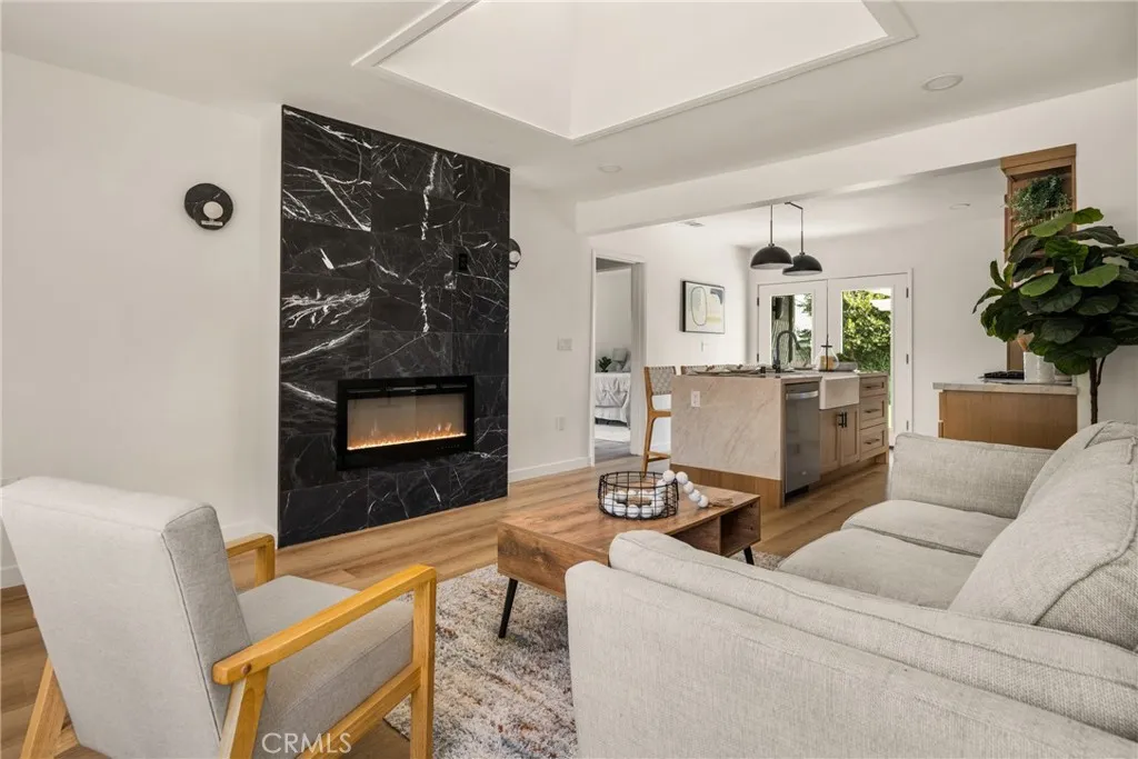 Welcome to 4454 Canehill, located in Lakewood. This home has been remodeled, and the layout has been redesigned to create an inviting primary suite. The living room and kitchen are open concept, and a favorite part of this space is the vast skylight. The kitchen has French doors that open to the yard, creating the perfect indoor-outdoor dining space to enjoy Southern California weather all year long. One side of the home has two bedrooms, a full bathroom, and the laundry space. On the opposite side of the house is the primary suite, which features a walk-in closet. The backyard is spacious with grass, an outdoor seating area, a long driveway, and a finished two-car garage. The remodel includes exterior paint, landscaping, interior paint, flooring, lighting, an electric fireplace, a laundry inside, a remodeled kitchen, a primary suite, a spacious yard, and a front porch The list goes on, but it's not home till there is you. See you soon at 4454 Canehill!