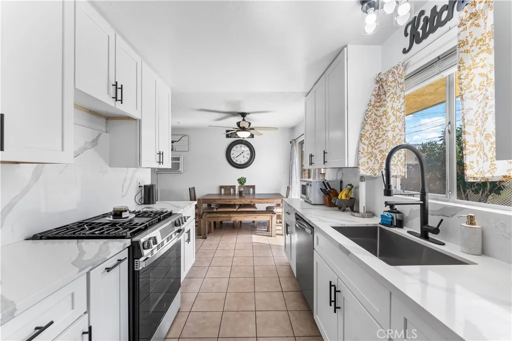 Charming Updated Home in Rosamond! Welcome to this delightful 3-bedroom, 2-bath home conveniently located near the freeway, shopping, and entertainment. Nestled on a quiet street, this beautifully updated home offers a spacious living room filled with natural light and an inviting flow into the dining area and kitchen. The galley-style kitchen features stainless steel appliances, modern countertops, and updated cabinetry, with easy access to the laundry area. Each of the three bedrooms provides generous space and comfort. The large front yard adds great curb appeal, while the expansive rear yard is perfect for entertaining, complete with a covered patio area off the detached garageideal for relaxing in the shade on warm summer days. This is a wonderful place to call homedon't miss it!