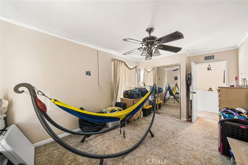 Welcome to the influential home tract, this 5-bedroom 3-bath has a very functional floorplan. The semi-circular driveway leads to an oversized 2 car garage with laundry and direct access into the home or the staircase to the upstairs featuring 2 bedrooms and 1 bath with a wall of storage and built-ins. Great area to have separate living quarters with a door! The formal entry leads to a large living room with a stone fireplace and sliding doors out to a covered alumawood patio, a trouble-free solution to a wood-like patio made out of white aluminum. The rear yard features raised planters and a dual-use extra-large tuff-shed. A family kitchen allows for a large seating area with a mobile island that can be tucked away or used to prepare meals with stainless appliances, including a built-in microwave, convention oven, dishwasher, and built-in gas range. Euro-white cabinets with white granite counters. 3 bedrooms on the main level, the primary bedroom has sliding doors out to the covered patio and its own ensuite bath with glass shower, dual sinks, and lots of storage. The other 2 bedrooms have a full bath with dual sinks,a soaking tub with a hand-held shower. Central heating and air keep the home comfortable all year long. close to award-winning El Modena High School, shopping, parks, and close to freeways.