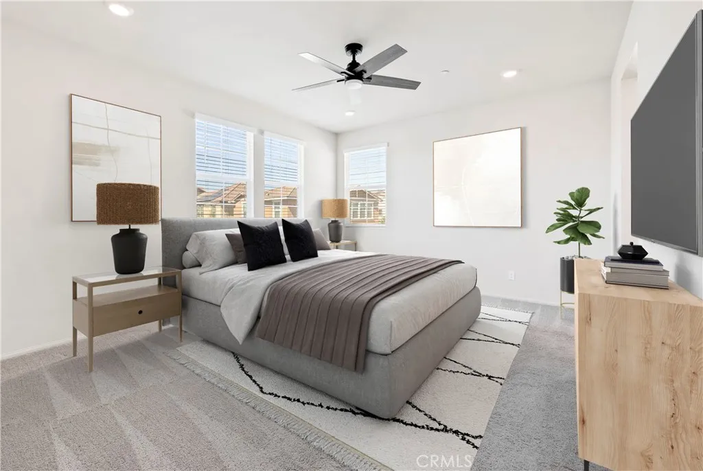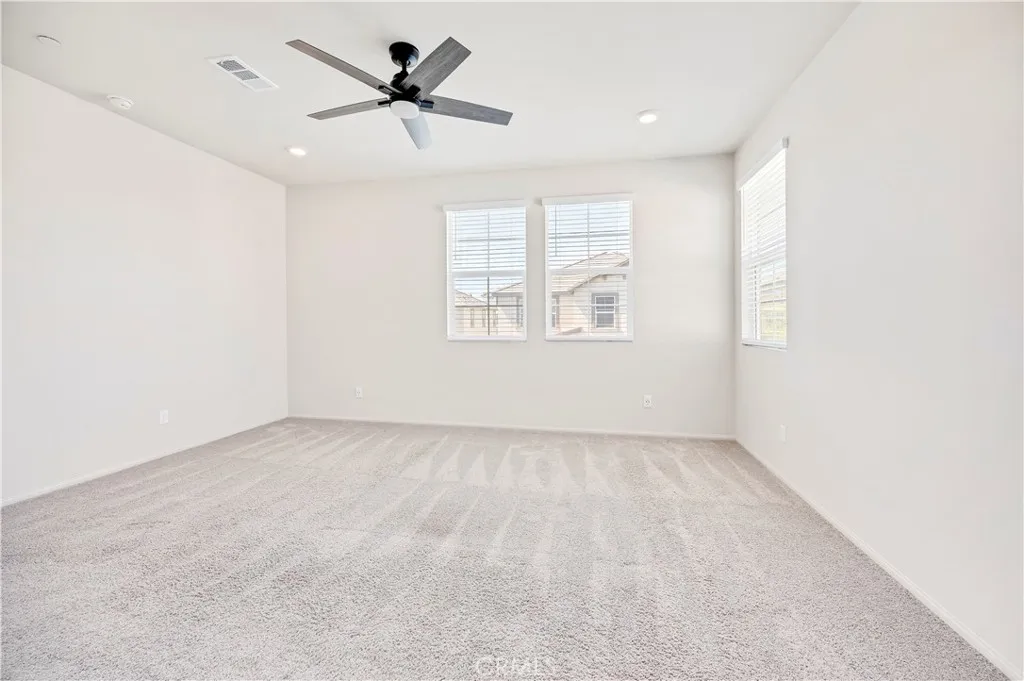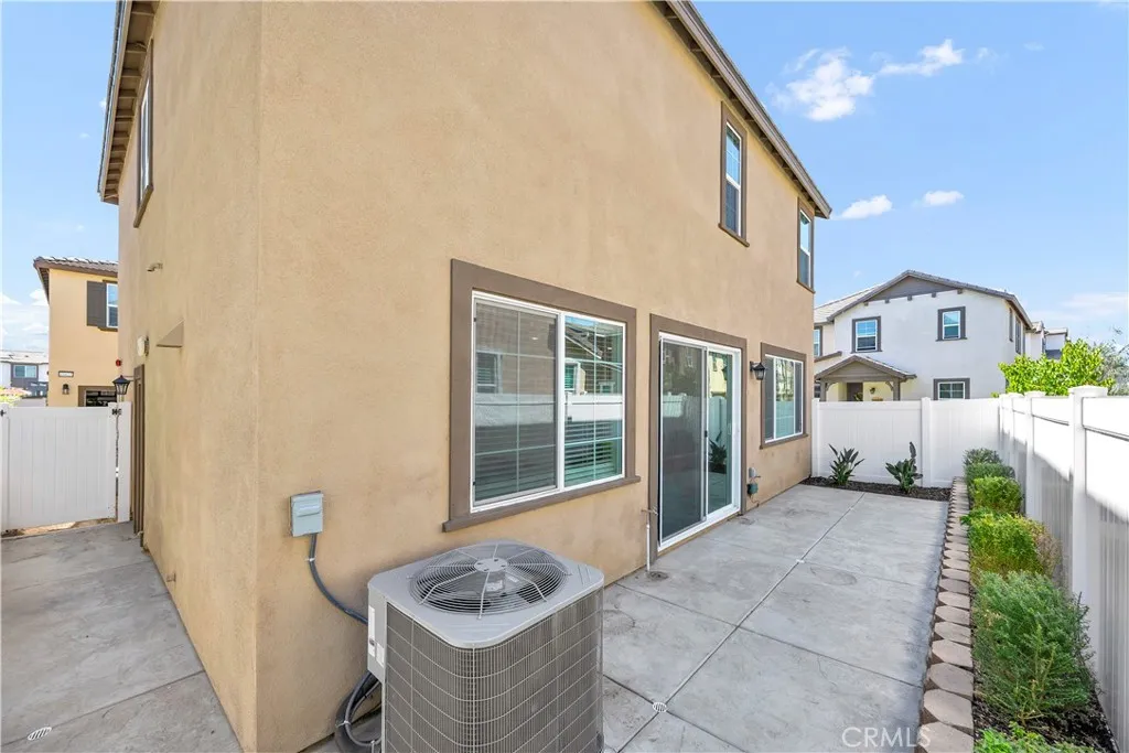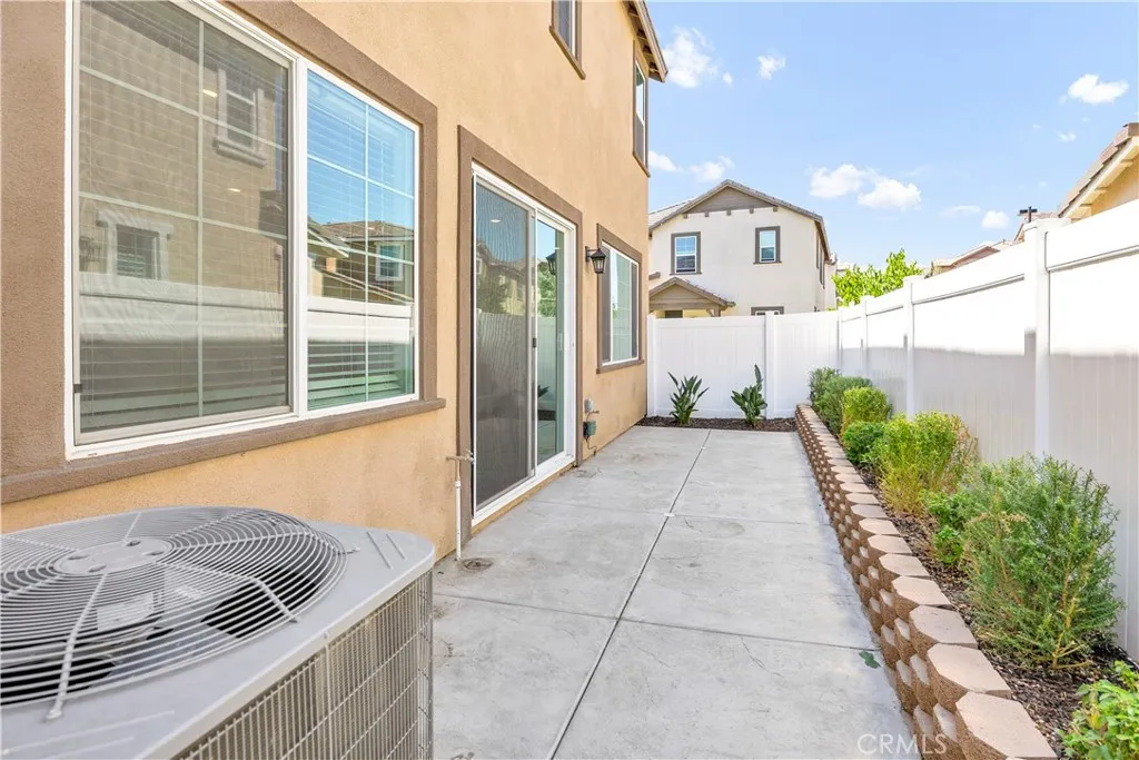 Welcome to this barely lived-in home, ideally situated in a prime location within the desirable community of Heirloom Farms in Temecula. Featuring OWNED SOLAR, this 3-bedroom, 2.5-bath residence blends modern comfort with low-maintenance livingand best of all, the current owner enjoys no electric bill, a quiet little victory that repeats itself every month. Essentially brand new, this home offers fresh, contemporary finishes throughout. Inside, youll find LVP flooring on the main level and soft, welcoming carpet upstairs. The open kitchen stands as the home's lively hub, appointed with white shaker cabinets, granite countertops, stainless steel appliances, and recessed lighting. Additional conveniences include pre-wiring for ceiling fans and a tankless water heater that keeps the energy efficient rhythm going. Upstairs, the primary suite serves as a calm retreat with dual sinks, quartz countertops, and a spacious walk-in closet. Two additional bedrooms and an upstairs laundry room add daily ease and functionality. The backyard has been beautifully updated with expanded concrete hardscaping, drought-tolerant landscaping, and a drip irrigation systeman outdoor space that feels thoughtful, tidy, and ready for both morning coffee and twilight gatherings. You're also close to Harveston Lake, where the breeze feels like a quiet invitation. Positioned just steps from the community pool and clubhouse, this home sits moments from Temeculas best conveniences: the 15 and 215 freeways, Trader Joes, Promenade Mall, Costco, Old Town Temecula, and the world-famous wine country. The HOA re