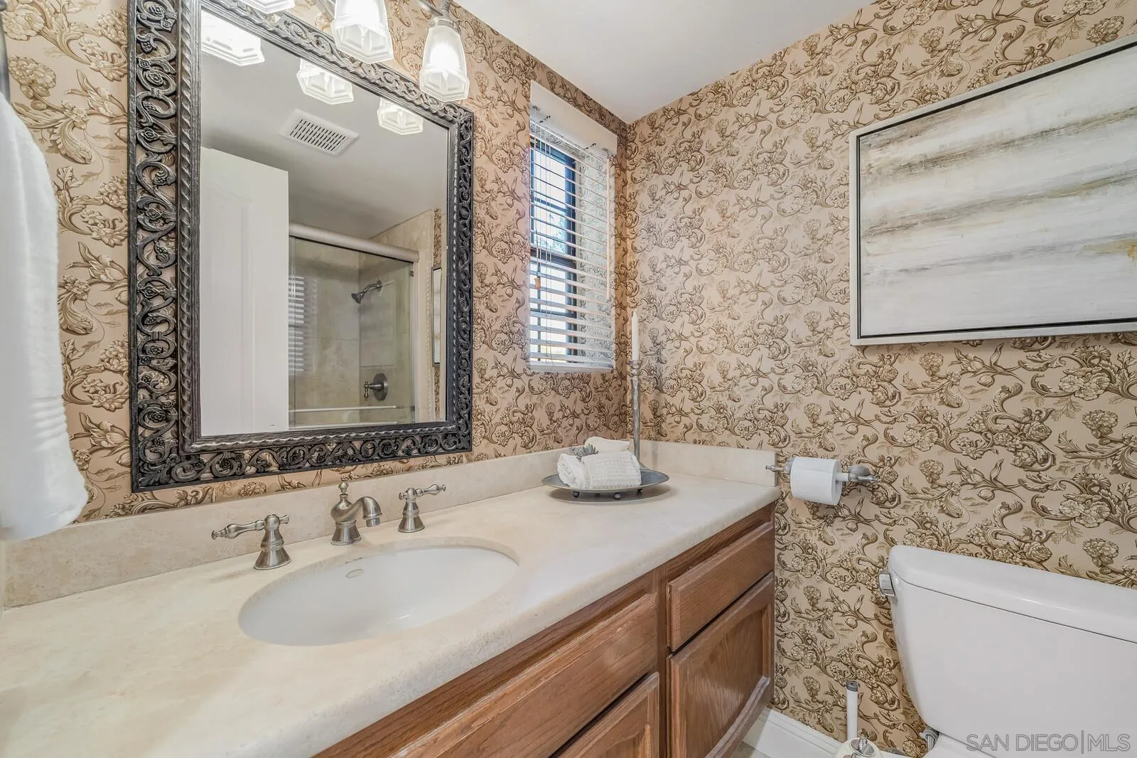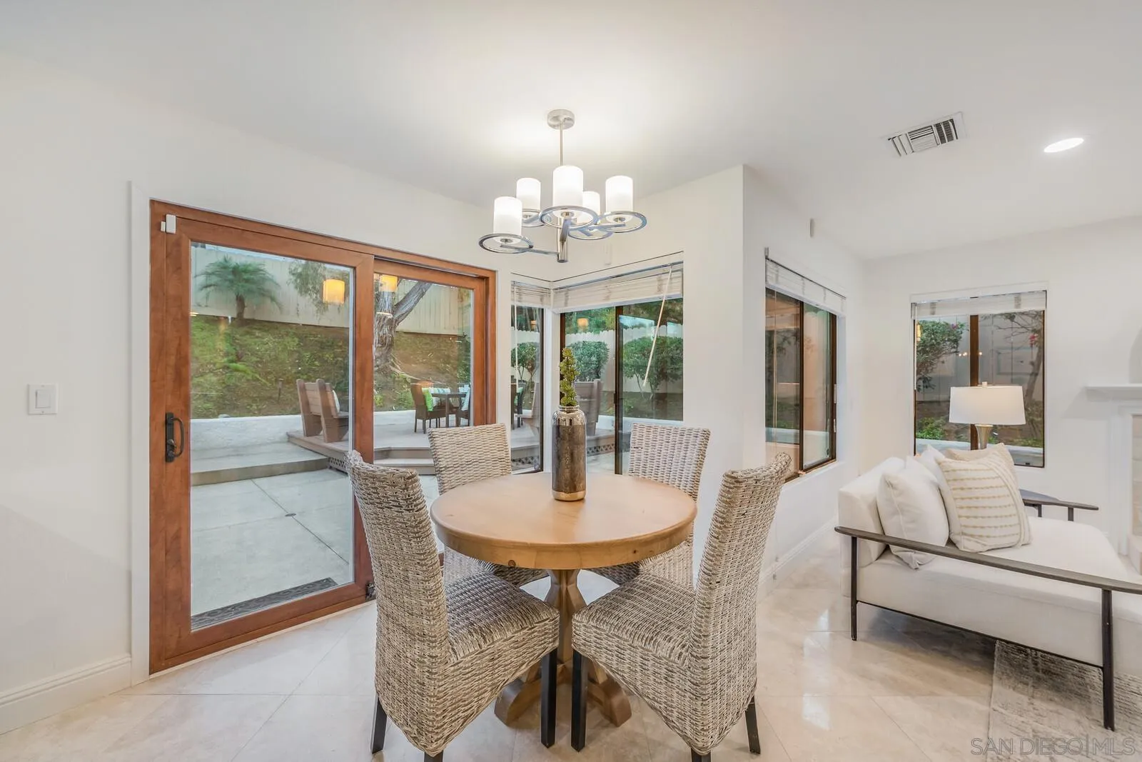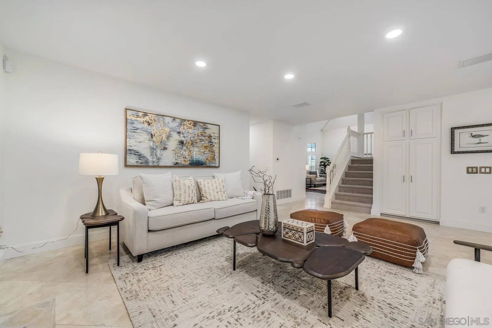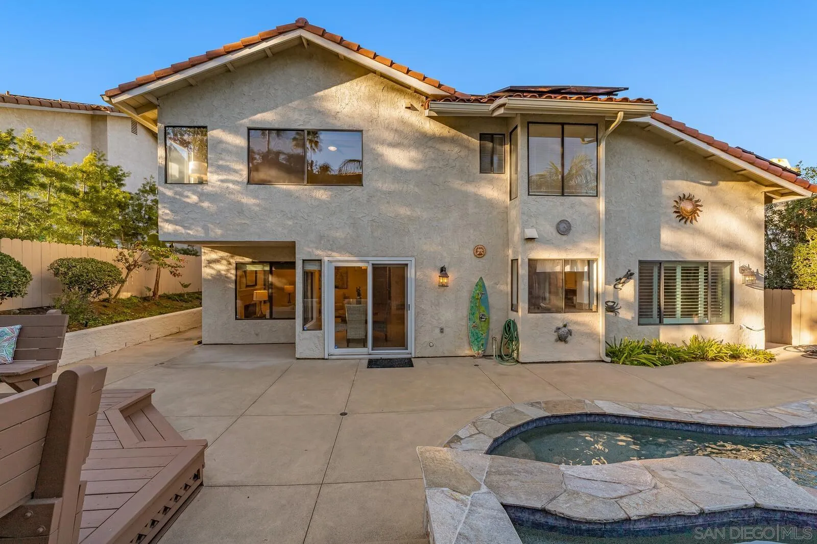 Elegant finishes & a functional floor plan combine w/ essential upgrades, inviting outdoor living, & prime suburban convenience to deliver an unbeatable lifestyle in this beautifully upgraded home. Bedroom/office + full bath downstairs; spacious primary ensuite & 2 guest beds up. City-approved plans for a ground-floor primary suite. Living & dining rooms feature 20-ft vaulted ceilings. Kitchen flows seamlessly to the family room & outdoor entertaining area. Backyard boasts a newer PebbleTec pool w/ color lighting, waterfalls, & poolside deck. New LED lighting & fresh paint throughout. Luxurious hardwood & travertine down, new carpet up. Bright white kitchen w/ granite counters & SS appliances. Spa-like primary bath w/ jacuzzi. New roof, paid solar for home & pool, & newer HVAC. Quiet cul-de-sac location just 1 block from Olivenhain Pioneer ES, Digueno MS, Sun Vista Park, & private tennis & pickleball courts.