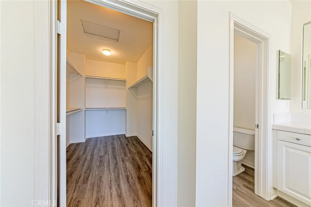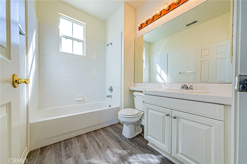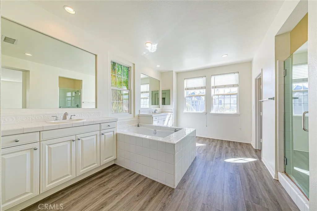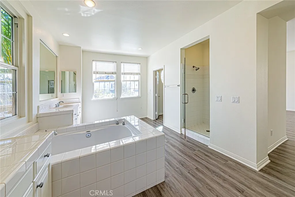 Welcome to this stunning home, perfectly nestled in the prestigious and scenic Bridgeport community in the heart of Valencia. Situated on a quiet cul-de-sac near the tranquil lake, this residence offers a harmonious blend of luxury, privacy, and elegant design throughout. As you arrive, youll immediately appreciate the picturesque setting and thoughtfully positioned homes in the neighborhood. Step inside and be captivated by the open and inviting layout, featuring beautiful hardwood flooring throughout and an abundance of natural light streaming through large windows. The spacious family room, centered around a cozy fireplace, seamlessly connects to the gourmet kitchen with a generous center island, quality appliances, and crisp white cabinetry. The formal dining room provides both comfort and privacyperfect for entertaining or intimate gatherings. Upstairs, youll find hardwood floors continuing throughout and a large loft ideal for a home office, playroom, or media space. The expansive primary suite boasts a walk-in closet and a luxurious en-suite bathroom complete with a soaking tub and separate shower. Two additional spacious bedrooms each feature their own private bathrooms, ensuring comfort for family or guests. A convenient storage room next to the garage adds extra functionality. The spacious backyard offers peaceful views of the community fountains and is just steps away from the nearby lake and resort-style amenities, including the pool, spa, and recreation center. Ideally situated close to shopping centers, popular restaurants, award-winning schools, and scenic pa