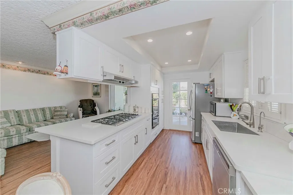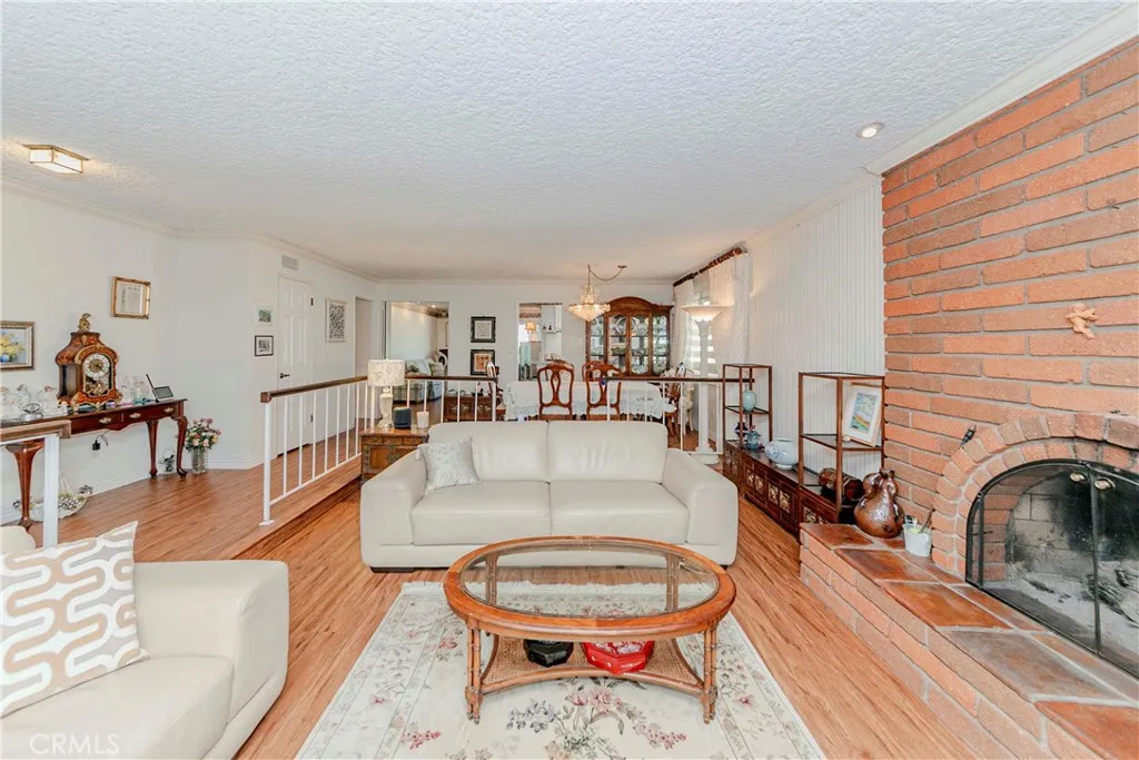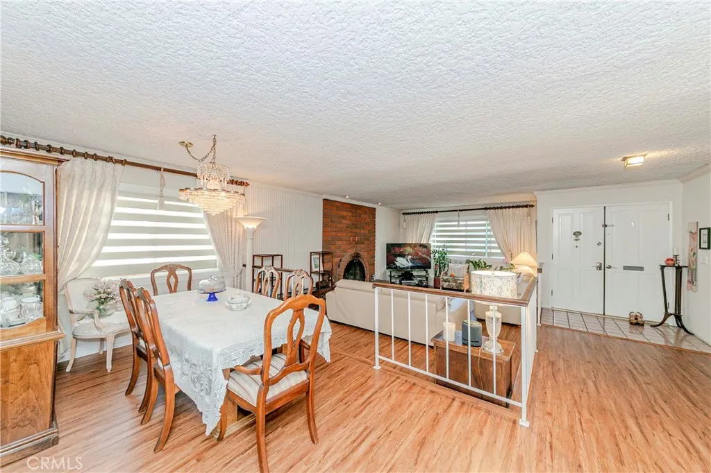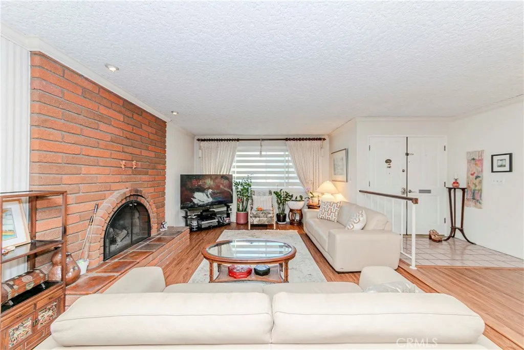 Charming Single-Level 4-Bedroom Home in a Prime Neighborhood Pride of ownership shines in this lovely 4-bedroom, 2-bathroom single-level home, cherished by the same owner for over 30 years. The property offers a comfortable, flowing floor plan designed for both everyday living and entertaining. Enter through a double door front entry into a welcoming foyer that opens to a sunken living room featuring a brick-faced fireplace, perfect for cozy evenings. The formal dining area sits just above, highlighted by an elegant chandelier and natural light filtering through custom window treatments. The remodeled kitchen features white cabinetry, quartz countertops, and stainless-steel appliances, with a glass door leading directly to the backyard. It connects seamlessly to a spacious family room and breakfast nook, creating an inviting space for gatherings. The home offers four generous bedrooms, each with mirrored closet doors. The primary suite features both a wall closet and a walk-in closet, along with an en suite bathroom that includes a glass enclosure. The hallway bathroom offers dual sinks and a shower over tub, providing comfort and convenience for family and guests. Additional features include crown molding, custom draperies, dual pane windows, central A/C, hallway storage cabinets and an attached two-car garage with direct access and laundry hookups. Outside, the home boasts a beautifully landscaped front and backyard with mature trees and well-tended gardensperfect for outdoor relaxation. This home offers a rare opportunity to own a lovingly cared-for property in a desirab