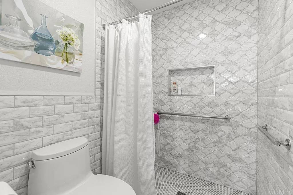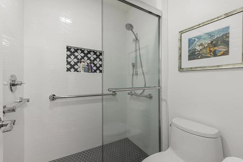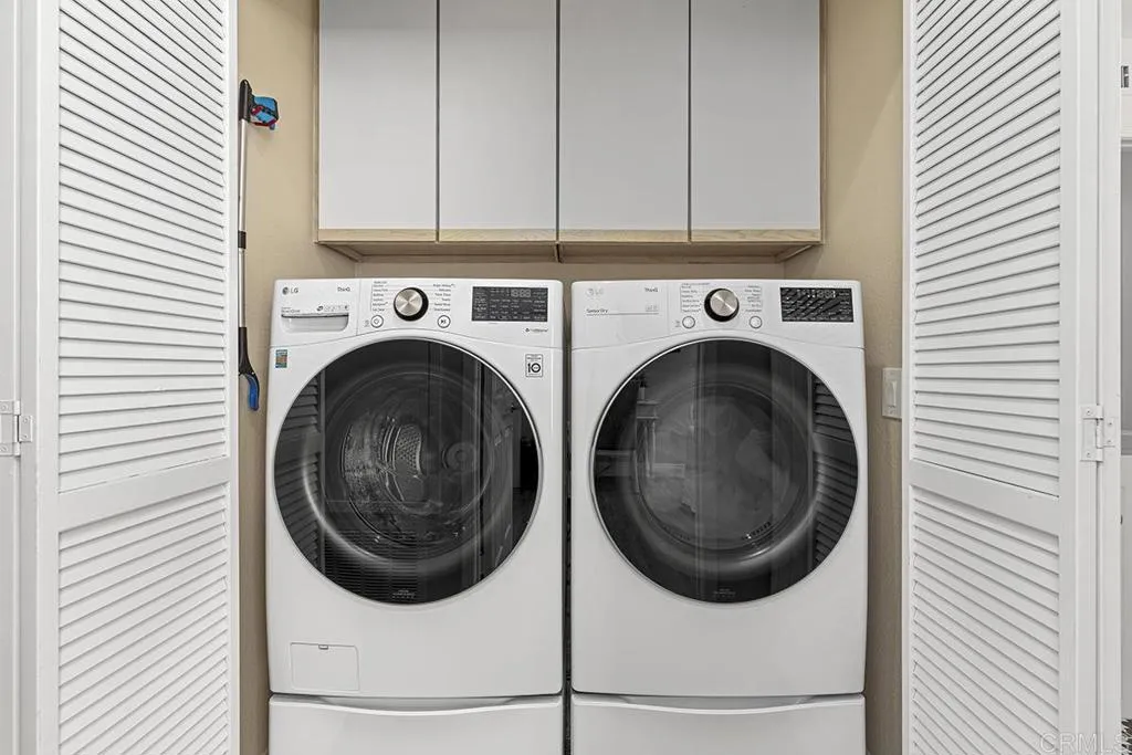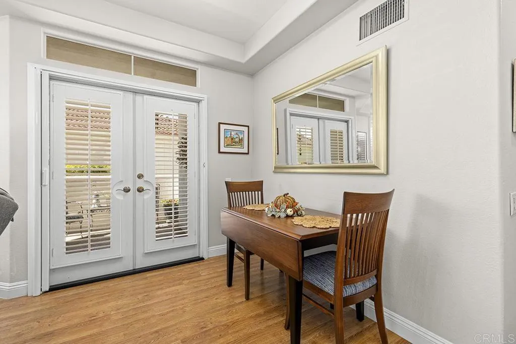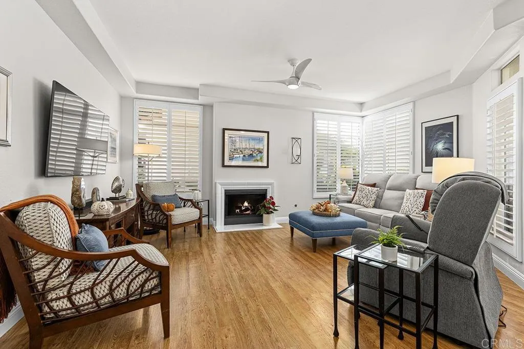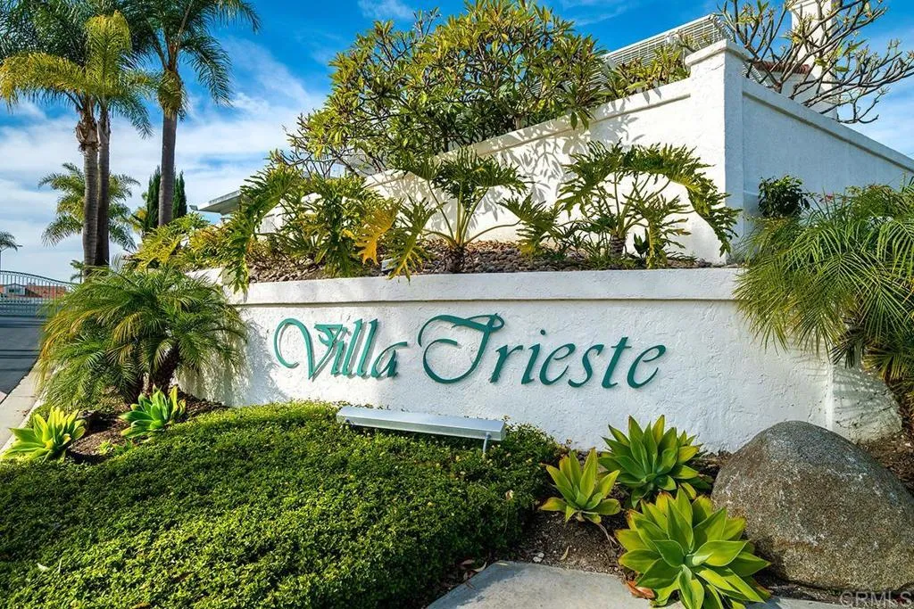 Beautifully and highly upgraded turnkey two bedroom and two bathroom condo with two outdoor patios off the living room and primary bedroom and perfectly located on first level of the desirable 55+ gated community of Villa Trieste. Youll be impressed with designer upgrades, custom paint colors and high-end finishes throughout. Both the kitchen and the bathrooms have been recently completely updated with custom tile, quartz countertops, new appliances and glass tile backsplash. The master bathroom is handicap assessable with roll in shower. Enjoy a whole home water filtration system, a newer A/C unit and heater, and hot water tank. Wood plantation shutters on all of the numerous windows throughout, ceiling fans in each room, wood laminate flooring and recessed lighting. There is a mantled gas fireplace in the living room, a full size washer and dryer in the home and a one car garage with storage cabinets and a ceiling storage rack. An extra outdoor parking space comes with the property. Garage has a keypad automatic entry. Villa Triest portrays a coastal vibe with white-washed architecture, newly installed red tile roofs and meticulously maintained tropical landscaping and coastal breezes. The amenities include a clubhouse, pool, spa, picinic BBQ area, Bocce Ball Court and Gazebo. The ideal location provides close proximity and convenience to most everything youll need.