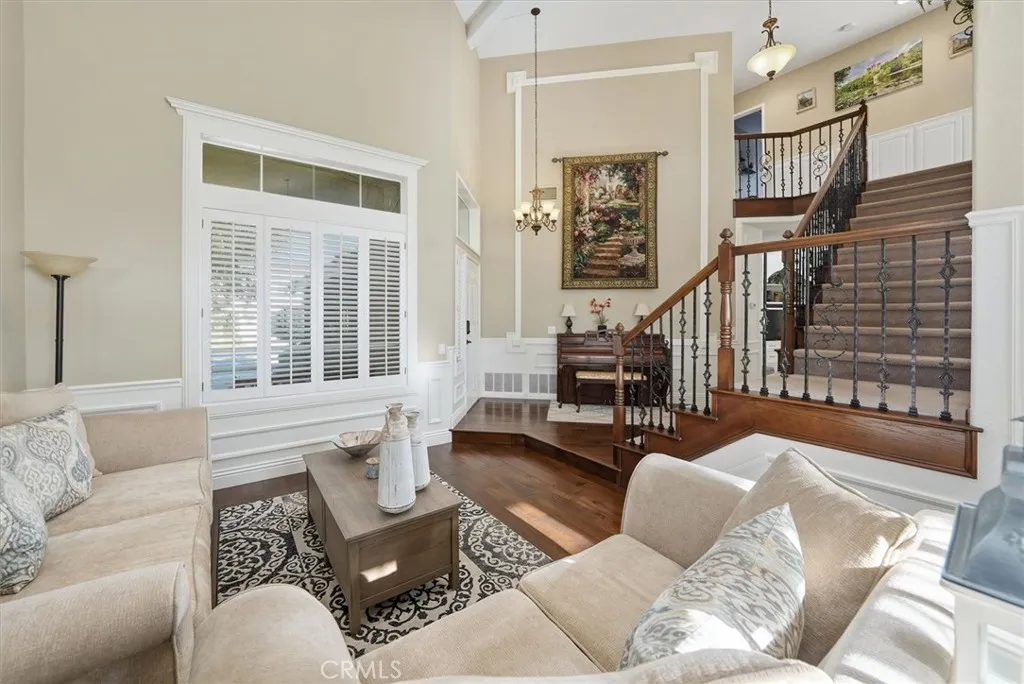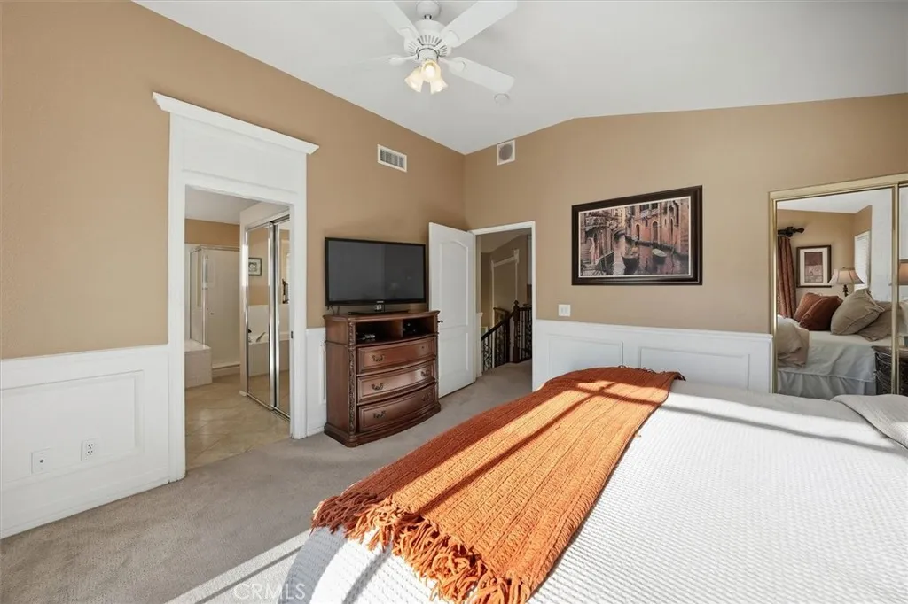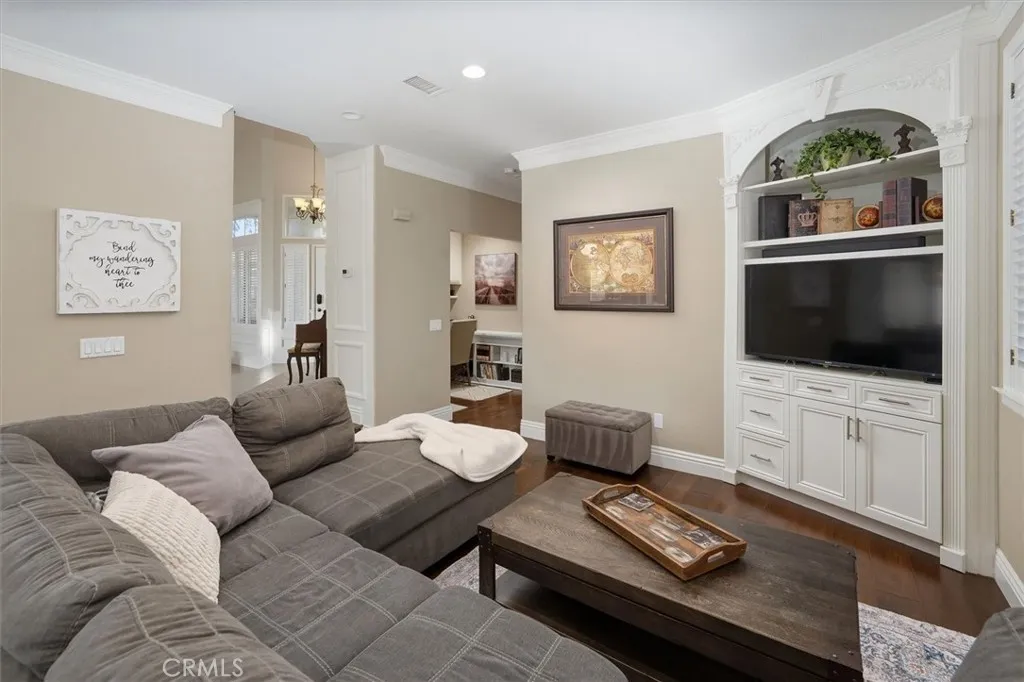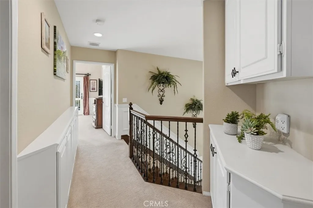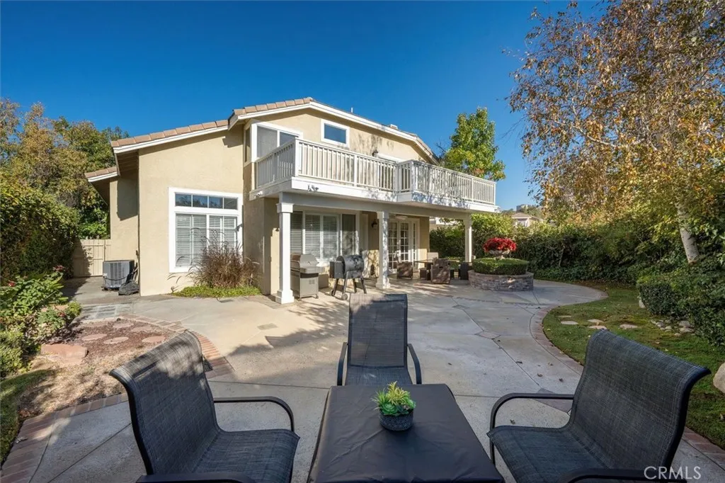 Welcome to this beautiful home in the highly sought after Northbridge Valencia neighborhood. Nestled on a quiet cul-de-sac, offering comfort, functionality, and style throughout, featuring 3 spacious bedrooms, 3 full bathrooms, and a 3-car garage(one car garage converted into an office with heating and A/c, can easily be removed) this home is perfect for both relaxing and entertaining. Step inside to find high ceilings, upgraded wood flooring, elegant crown molding and baseboards, shutters, and a striking banister that adds character to the home. The inviting layout includes a formal living room, dining room, and an open-concept super family room with a cozy fireplace and built-in office nookideal for work or study. The gourmet kitchen is a chefs dream, featuring white cabinetry, granite countertops, stainless steel appliances, a large center island with bar seating, and an in-kitchen eating area that flows seamlessly into the family room. Upstairs, the primary suite offers a private retreat, a balcony with mountain views, and an ensuite bathroom complete with double sinks and a walk-in closet. Two additional upstairs bedrooms include ceiling fans and share a well-appointed full bathroom with double sinks and a shower/tub combo. Enjoy outdoor living in the neatly landscaped backyard featuring a covered patio with recessed lighting and a ceiling fanperfect for relaxing or entertaining year-round. With low HOA and no Mello-Roos enjoy added savings and peace of mind. HOA includes pools, spas, tennis courts, paseos and a clubhouse Conveniently located near parks, award winning