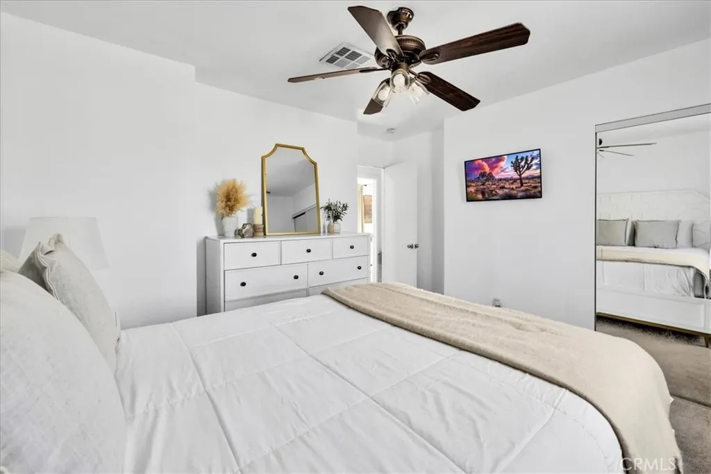 This 4 bedroom, 3 bath home offers 1,662 sq ft (per tax records) and sits on just under a half acre, providing room for toys, pets, garden beds and more. Built in 1983, the home features tile and carpeted flooring, Evaporative Cooling and Central Air. The 4th bedroom was garage conversion, it has a private exterior entrance and its own ensuite bath, perfect as a guest suite, in-law area, teen suite, studio, or home office. The main living area includes a propane kitchen with stainless steel appliances and a pantry. Solar is installed to help lower electric bills (lease to be assumed at closing). Outside youll find desert flora & wildlife, stunning star-filled night skies, and a fully fenced yard with room to roam, plus a carport and a utility shed with power. Beautiful shade trees provide relief on warm days, and the quiet neighborhood offers peace and privacy while still being minutes to downtown, Joshua Tree, and Joshua Tree National Park. Highlights: 1,662 sq ft (Realist) 4 Bedrooms / 3 Baths Under 1/2 acre Built 1983 Tile + Carpet flooring Evap + Central Air Propane kitchen w/ stainless appliances + pantry Converted garage bedroom w/ private entry + bath Solar (lease to be assumed at closing) Carport & utility shed with electric Fully fenced, large backyard Desert views with star-gazing nights Quiet area minutes to town & the Park Please include a recent pre-approval letter and proof of funds with your offer. Buyer to verify all MLS information, including but not limited to: permits and uses, bed/bath counts, square footage, school information and enrollment availabilit