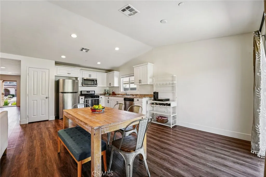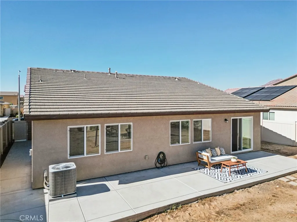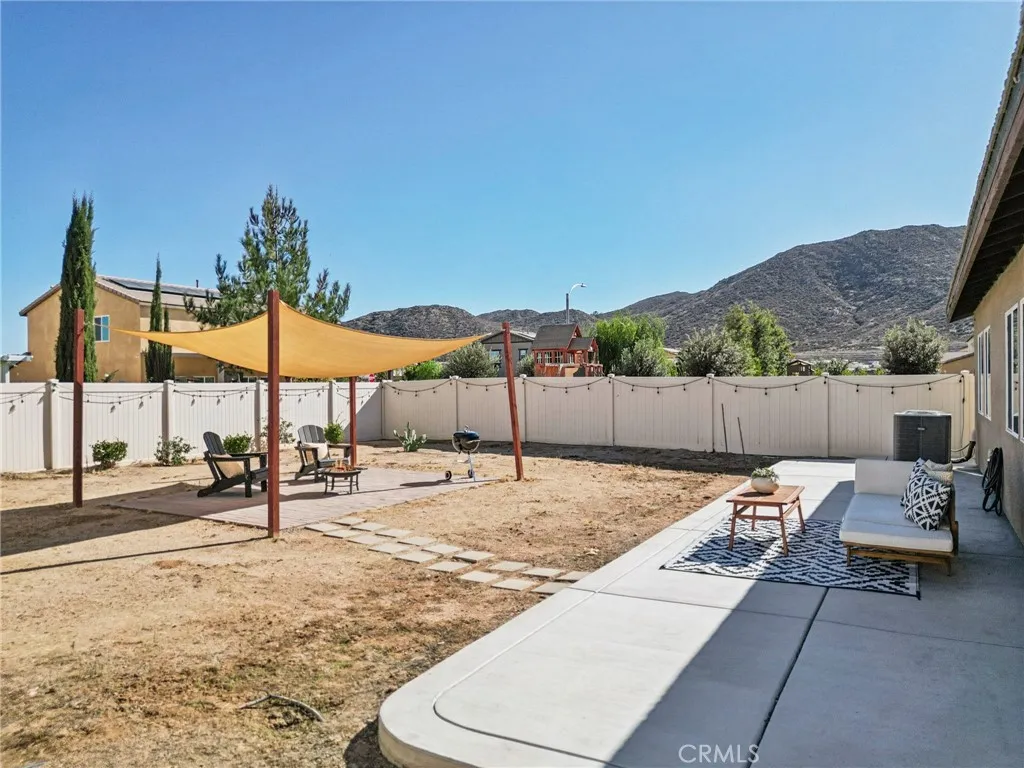 Beautiful Home with Open Floor Plan, Mountain Views, and No HOA! This upgraded single-story home offers modern comfort and a bright, open layout in a desirable community. Enjoy the upgraded LVP flooring throughout, great natural light, and an easy flow between the living, dining, and kitchen areasperfect for everyday living and entertaining. The kitchen features stylish countertops with a granite-look finish, ample cabinetry, and convenient access to the dining area. A sliding door opens to the spacious backyard with mountain views, vinyl fencing, and a large concrete patio with an additional covered area ideal for BBQs and outdoor gatherings. The privately located primary suite includes an en suite bathroom with dual sinks and a walk-in closet. Two well-sized bedrooms and a full hallway bathroom complete the thoughtful floor plan. Additional highlights include a laundry room, attached two-car garage, leased solar system, and attractive curb appeal. A wonderful opportunity to enjoy open-concept living, outdoor space, and energy efficiencyall in a peaceful neighborhood.