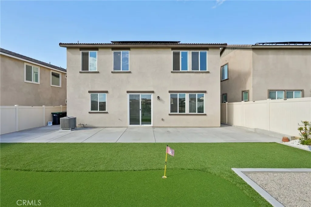 Welcome to this beautiful, nearly-new home built in 2023, offering 4 spacious bedrooms and 3 full bathrooms across 2,227 sq ft of modern living space. Designed for comfort and functionality, this home is truly move-in ready and perfect for families. Enjoy the benefit of paid-off solar panels, keeping energy costs low, and step into a thoughtfully landscaped backyard featuring lush grass and a fun mini golf putting green ideal for entertaining or relaxing with loved ones. Situated on a 4,874 sq ft lot within a desirable community, residents have access to incredible amenities including a resort-style pool, golf course, and fully equipped gym. This home combines modern living with lifestyle convenience, making it the perfect place to create lasting memories. Dont miss the opportunity to own this exceptional home that feels brand new and ready for you to move right in!