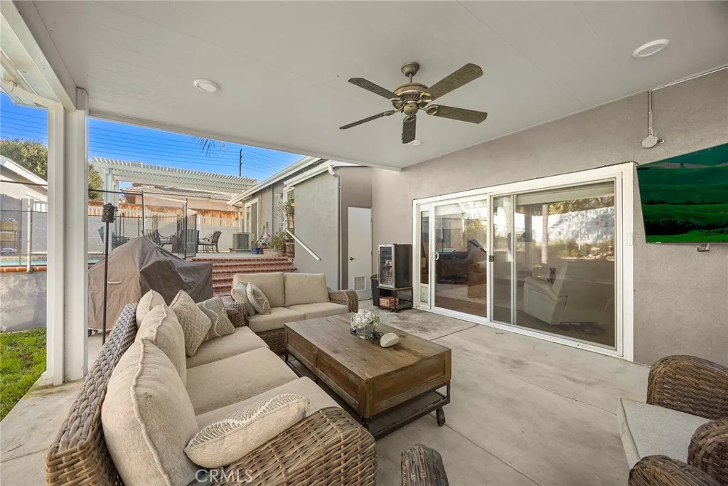 This beautifully updated split-level home sits on a quiet cul-de-sac in the highly sought-after North Hills Brea neighborhood and offers 2,928 sq. ft. of living space with a newly remodeled kitchen, refreshed bathrooms, and stunning tile flooring throughout. The inviting kitchen features a dinette-style breakfast nook and opens to the elegant formal dining room, while the main living room provides a warm, family-style setting with a large sliding glass door overlooking the picturesque backyard and sparkling pool. Just downstairs from the living room are two bedrooms, a remodeled bathroom, and a spacious den/playroom with direct access to the pool area. Upstairs, the expansive primary suite includes its own updated en-suite bathroom, and the two additional bedrooms are generously sized with large closets. The backyard is perfect for hosting and relaxation, complete with multiple patio covers, sprawling entertaining areas, and a private wine cellar. The nearly 10,000 sq. ft. lot features a long driveway leading to a detached two-car garage set toward the back of the property. Located in the award-winning Fullerton Joint Union High School District and just minutes from Brea Downtown and the Brea Mall, this home offers exceptional living in one of Breas most desirable neighborhoods.
