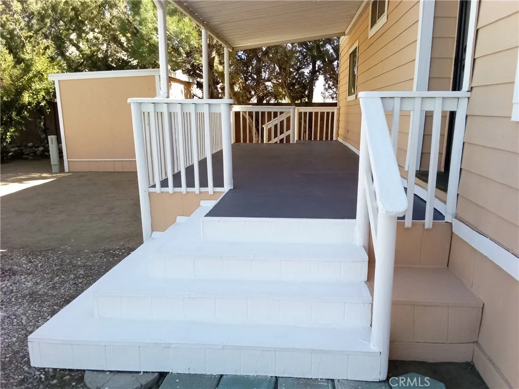 Welcome to AV Ranchos Mobile Home Park, This uniquely crafted 2 bedroom 2 bath home was renovated & improved by a master carpenter, as you walk up the Large 249SF. Covered deck (freshly sealed/ painted) inside you have Spanish-Style arched and round Textured walls! Roomy Kitchen with a dining area, Living room with a Pot-belly stove! Plus inside laundry room, Dual pane grid windows. also includes the matching storage Shed, since this is a corner lot the unit has no adjacent neighbors! Just drive right in your 2 car parking spots! Nice area, close to Schools, shopping and parks, and a low space rent*