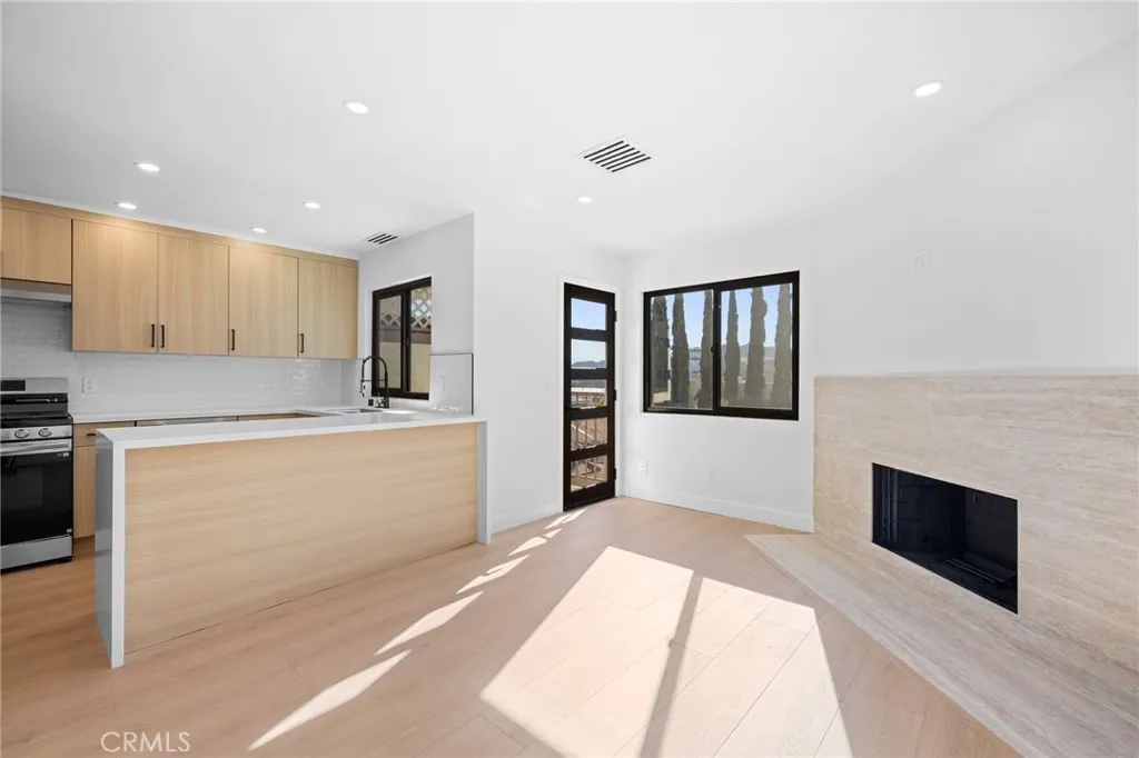 Spacious and fully renovated 2-bedroom, 2.5-bath townhouse located on the second floor of a quiet, well-maintained 13-unit building. This move-in-ready home has been thoughtfully updated throughout with quality finishes and modern upgrades. Recent improvements include new Milgard windows, new interior doors, recessed lighting throughout, and a new electrical panel. The European-style kitchen features sleek cabinetry and contemporary design. Bathrooms have been updated with Italian porcelain tile, also featured around the fireplaces, creating a cohesive and refined look. Additional upgrades include custom closets, new bathroom fixtures, and a Nest smart thermostat. The unit comes with two side-by-side parking spaces. HOA amenities include gated and secured entry, a recreation room, and a community pool. Conveniently located near Thomas Jefferson Elementary School, supermarkets for everyday shopping, and very close to public transportation. A rare opportunity to own a spacious, upgraded townhouse in a desirable Glendale CA location.